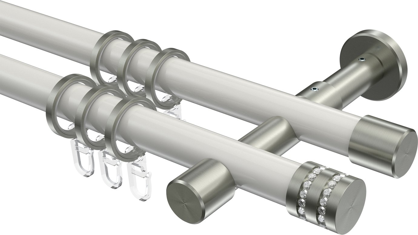 Informationen zu Gardinenstange Metall 20 mm Ø 2-läufig PRESTIGE - Estana Weiß / Edelstahl-Optik: