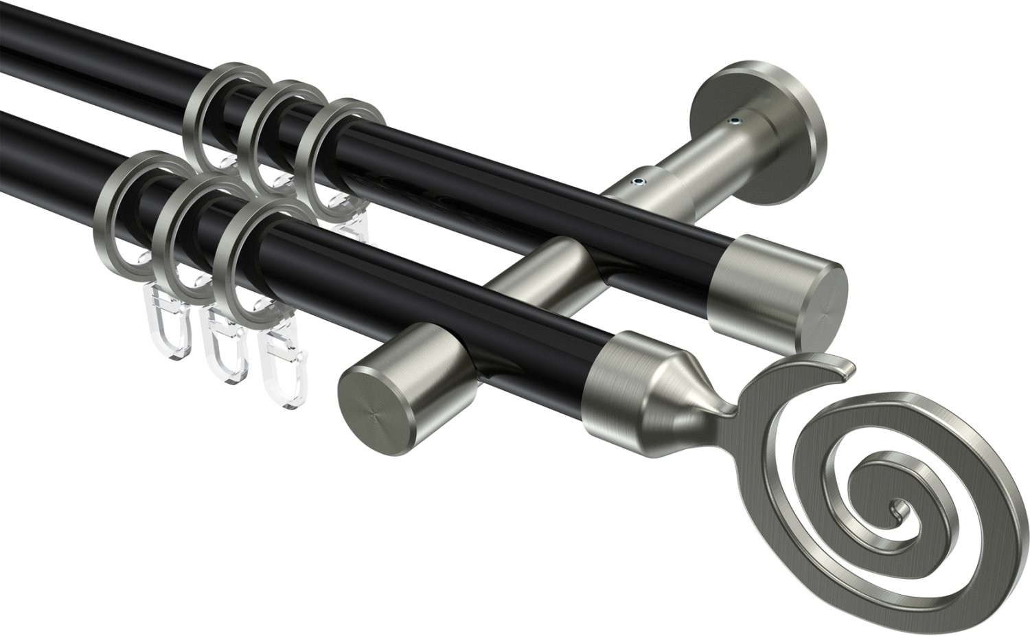 Gardinenstangen aus Metall in 20 mm Ø, 2-läufig, Modell PRESTIGE - Galaxa Schwarz / Edelstahl-Optik