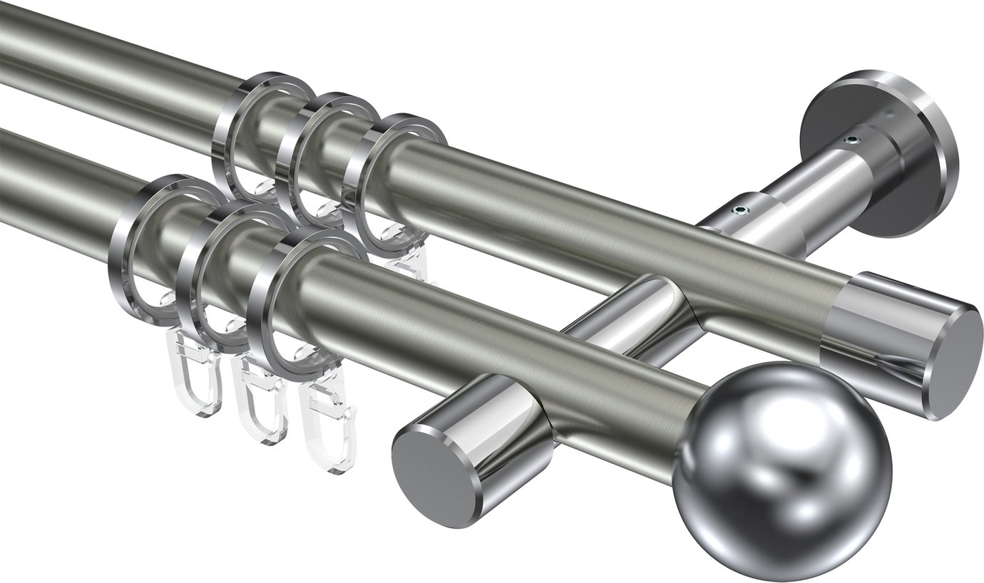 Gardinenstangen aus Metall in 20 mm Ø, 2-läufig, Modell PRESTIGE - Luino Edelstahl-Optik / Chrom