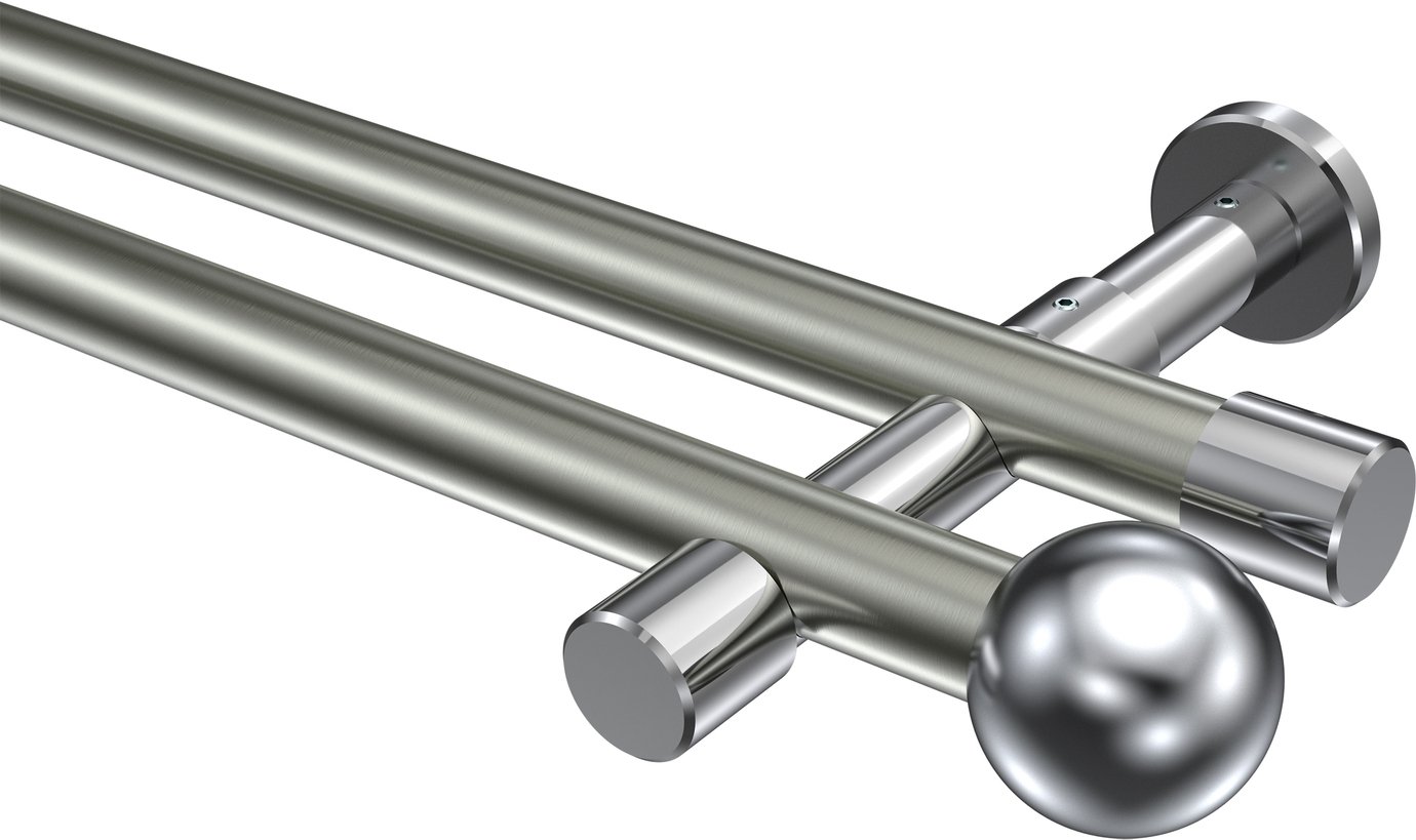 Informationen zu Gardinenstange Metall 20 mm Ø 2-läufig PRESTIGE - Luino Edelstahl-Optik / Chrom (ohne Ringe):