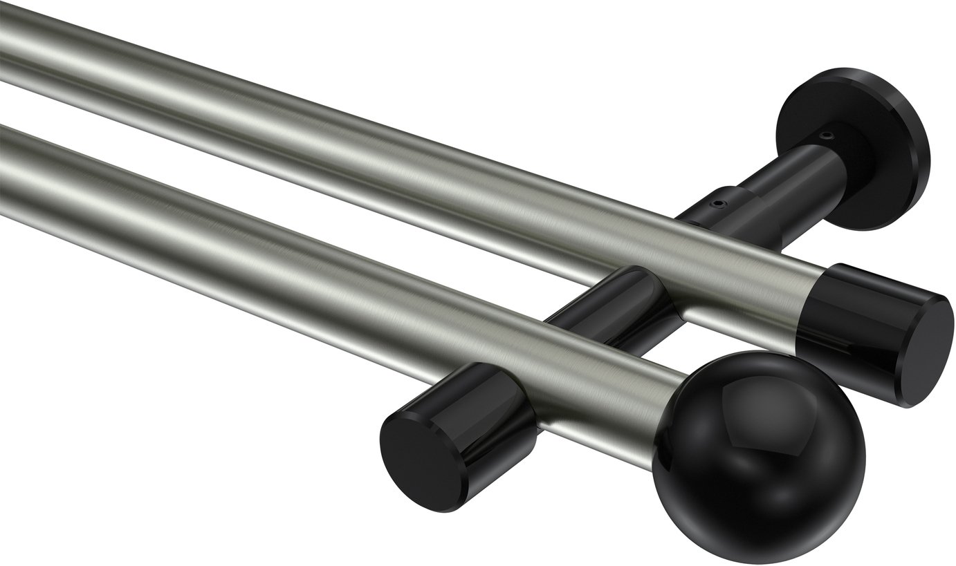 Informationen zu Gardinenstange Metall 20 mm Ø 2-läufig PRESTIGE - Luino Edelstahl-Optik / Schwarz (ohne Ringe):