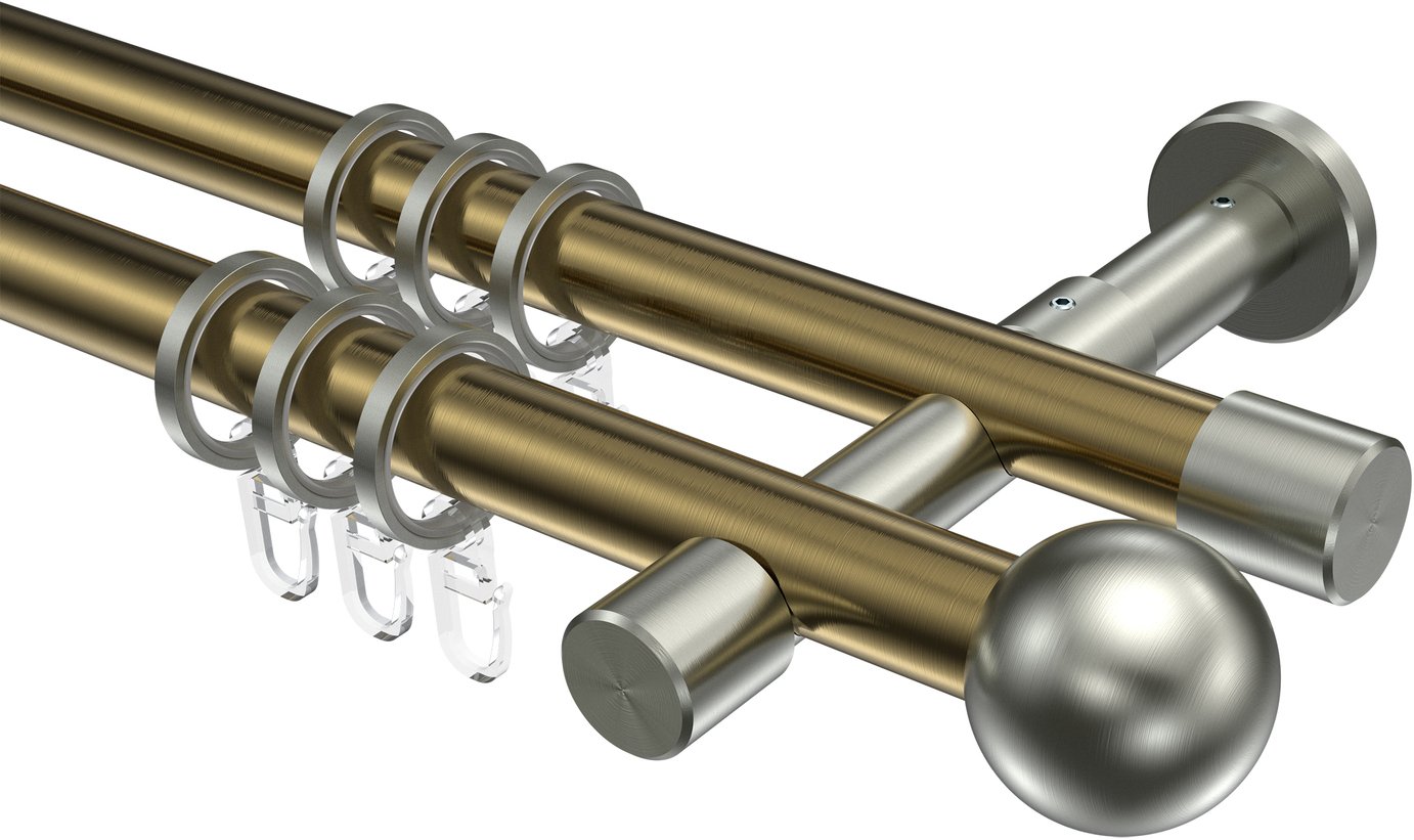 Informationen zu Gardinenstange Metall 20 mm Ø 2-läufig PRESTIGE - Luino Messing Antik / Edelstahl-Optik: