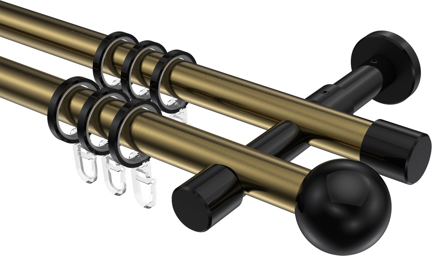 Informationen zu Gardinenstange Metall 20 mm Ø 2-läufig PRESTIGE - Luino Messing Antik / Schwarz: