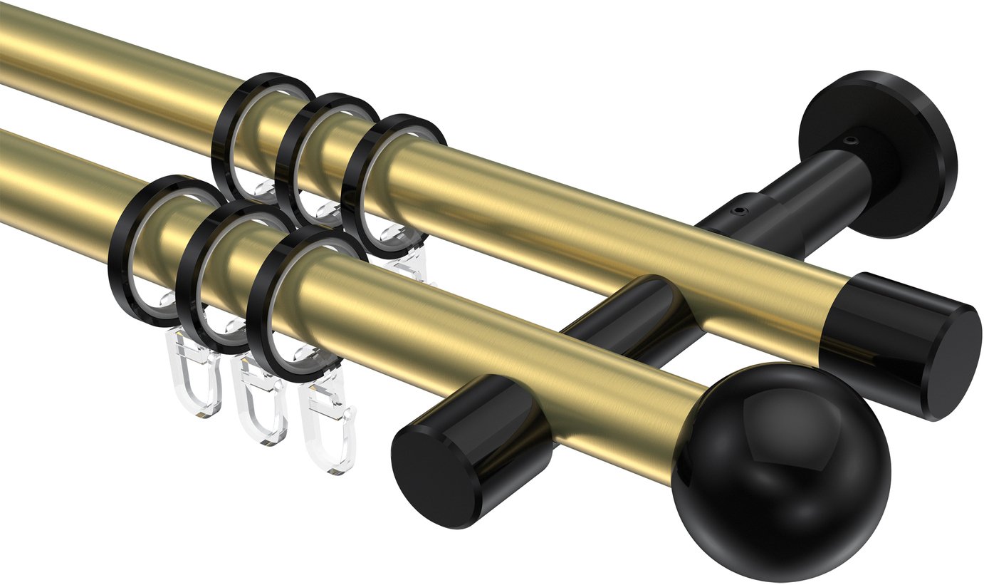 Informationen zu Gardinenstange Metall 20 mm Ø 2-läufig PRESTIGE - Luino Messing-Optik / Schwarz: