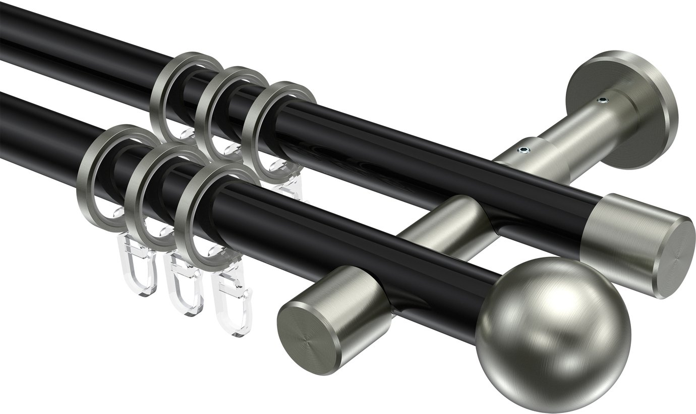 Informationen zu Gardinenstange Metall 20 mm Ø 2-läufig PRESTIGE - Luino Schwarz / Edelstahl-Optik: