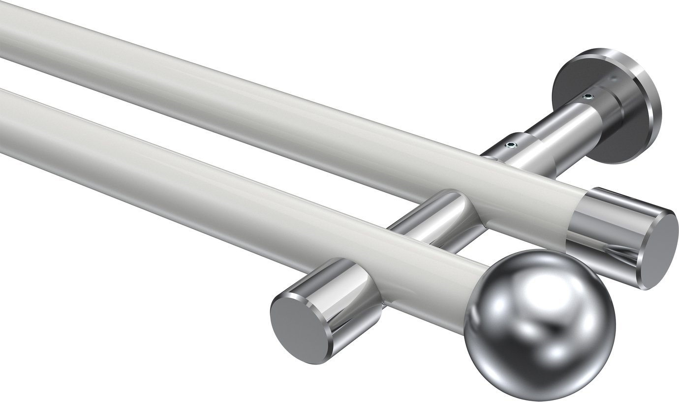 Informationen zu Gardinenstange Metall 20 mm Ø 2-läufig PRESTIGE - Luino Weiß / Chrom (ohne Ringe):
