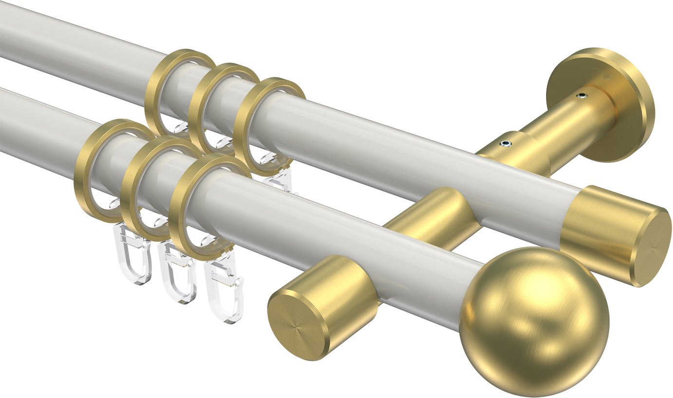 Gardinenstangen aus Metall in 20 mm Ø, 2-läufig, Modell PRESTIGE - Luino Weiß / Messing-Optik