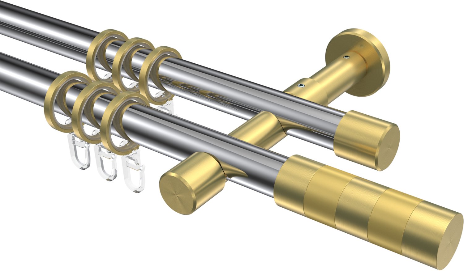 Gardinenstangen aus Metall in 20 mm Ø, 2-läufig, Modell PRESTIGE - Mavell Chrom / Messing-Optik
