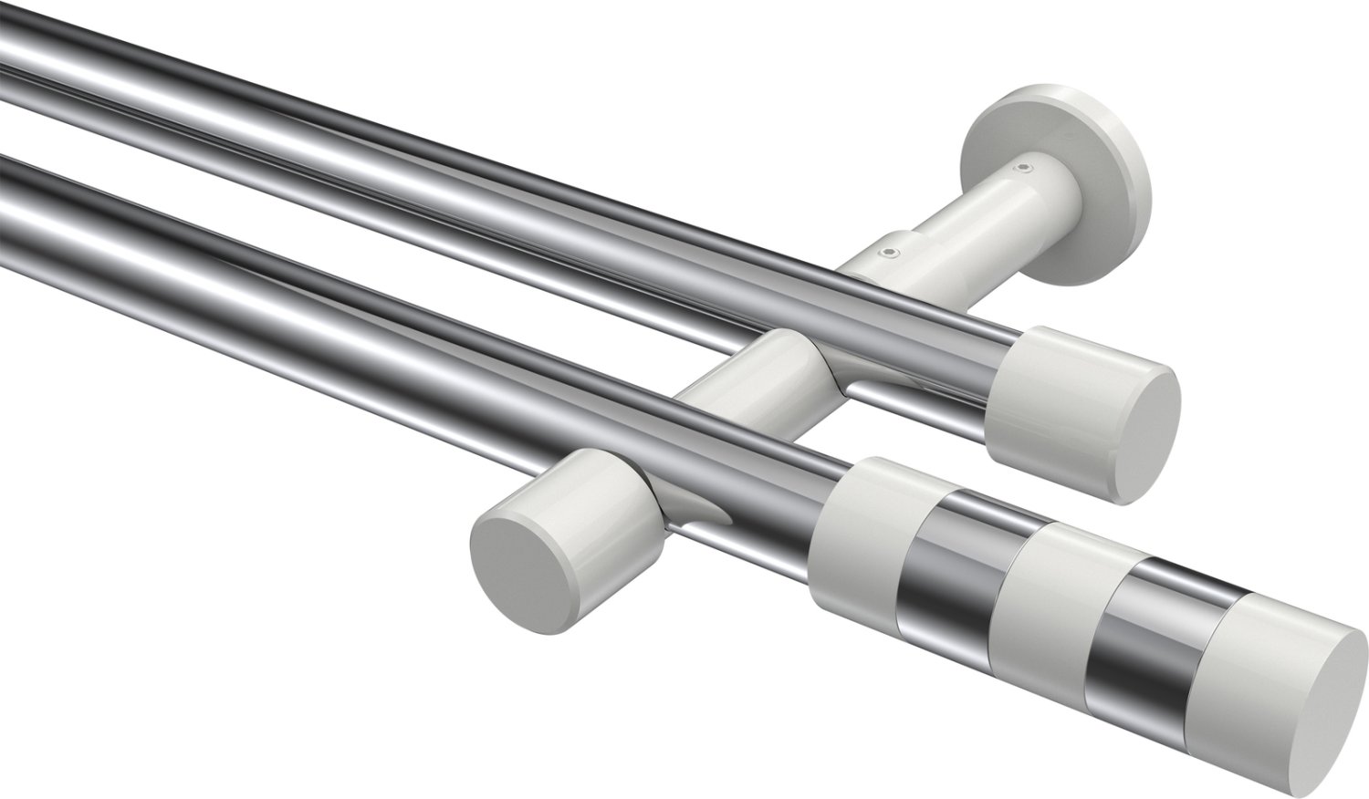 Informationen zu Gardinenstange Metall 20 mm Ø 2-läufig PRESTIGE - Mavell Chrom / Weiß (ohne Ringe):