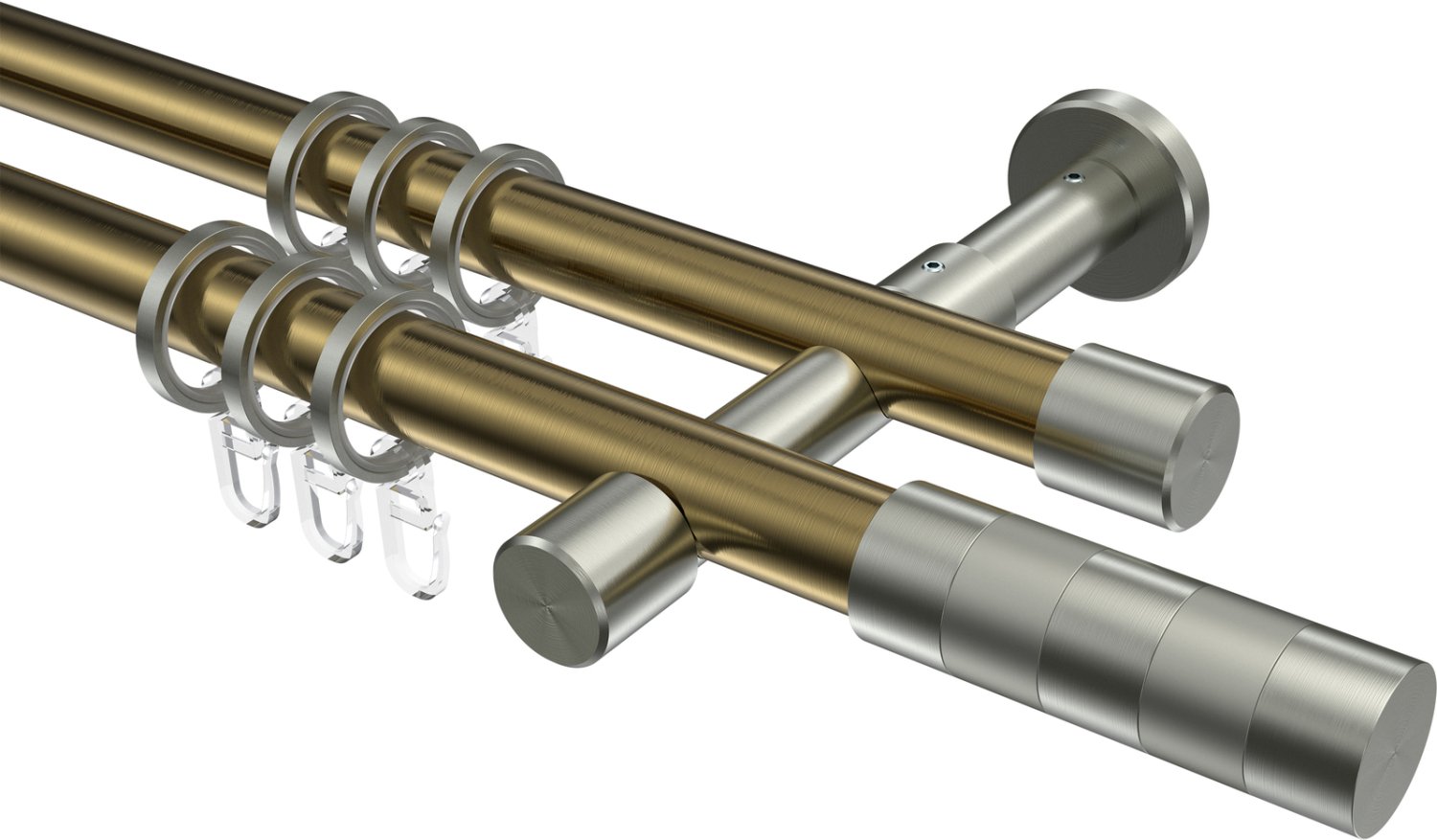 Gardinenstangen aus Metall in 20 mm Ø, 2-läufig, Modell PRESTIGE - Mavell Messing Antik / Edelstahl-Optik