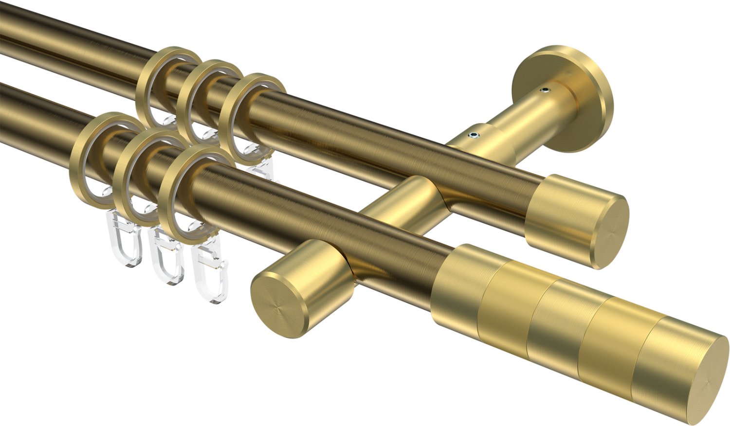 Gardinenstangen aus Metall in 20 mm Ø, 2-läufig, Modell PRESTIGE - Mavell Messing Antik / Messing-Optik