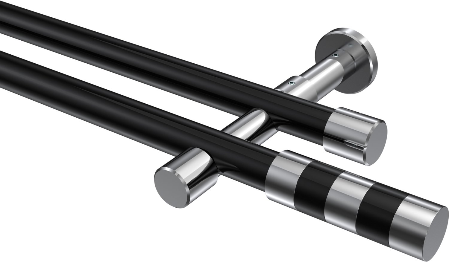 Informationen zu Gardinenstange Metall 20 mm Ø 2-läufig PRESTIGE - Mavell Schwarz / Chrom (ohne Ringe):