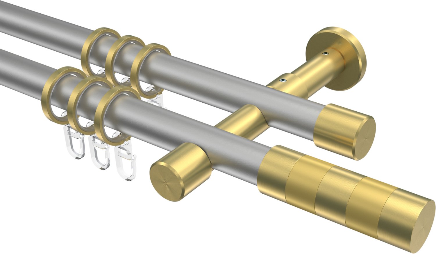 Gardinenstangen aus Metall in 20 mm Ø, 2-läufig, Modell PRESTIGE - Mavell Silbergrau / Messing-Optik