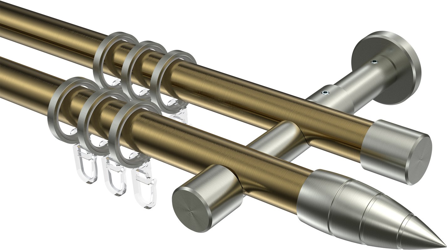 Gardinenstangen aus Metall in 20 mm Ø, 2-läufig, Modell PRESTIGE - Samanto Messing Antik / Edelstahl-Optik