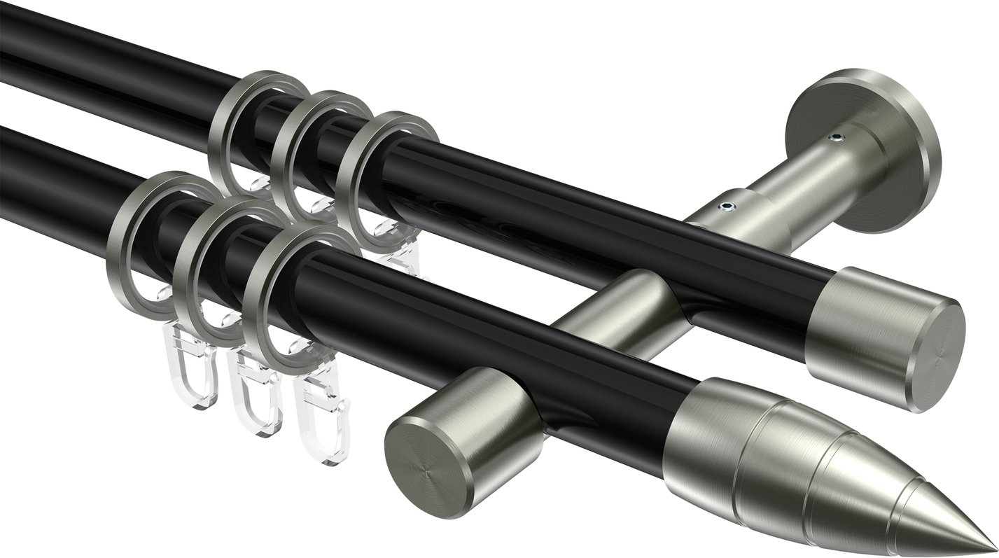 Informationen zu Gardinenstange Metall 20 mm Ø 2-läufig PRESTIGE - Samanto Schwarz / Edelstahl-Optik:
