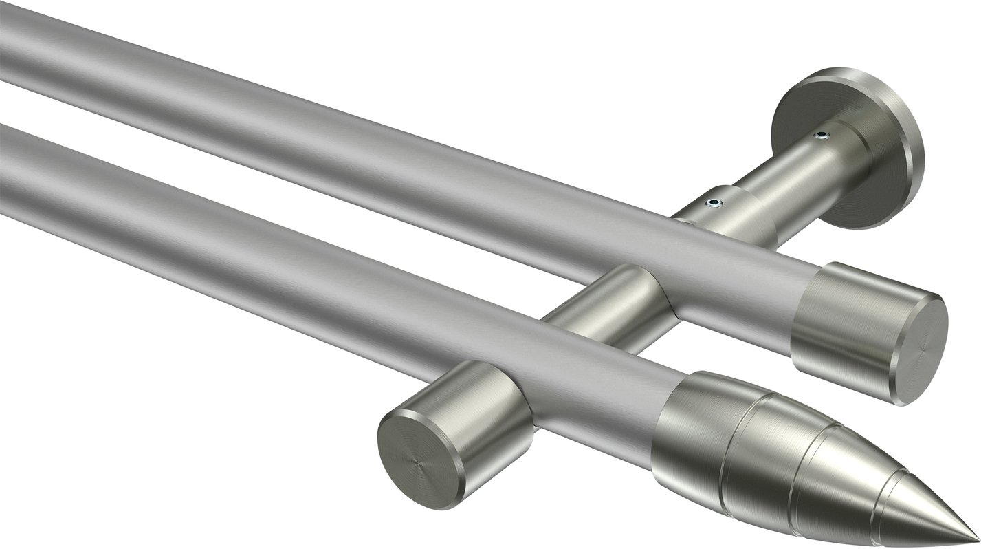 Informationen zu Gardinenstange Metall 20 mm Ø 2-läufig PRESTIGE - Samanto Silbergrau / Edelstahl-Optik (ohne Ringe):