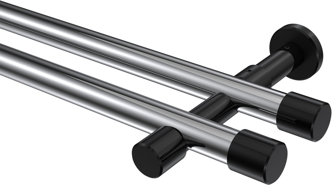 Informationen zu Gardinenstange Metall 20 mm Ø 2-läufig PRESTIGE - Santo Chrom / Schwarz (ohne Ringe):