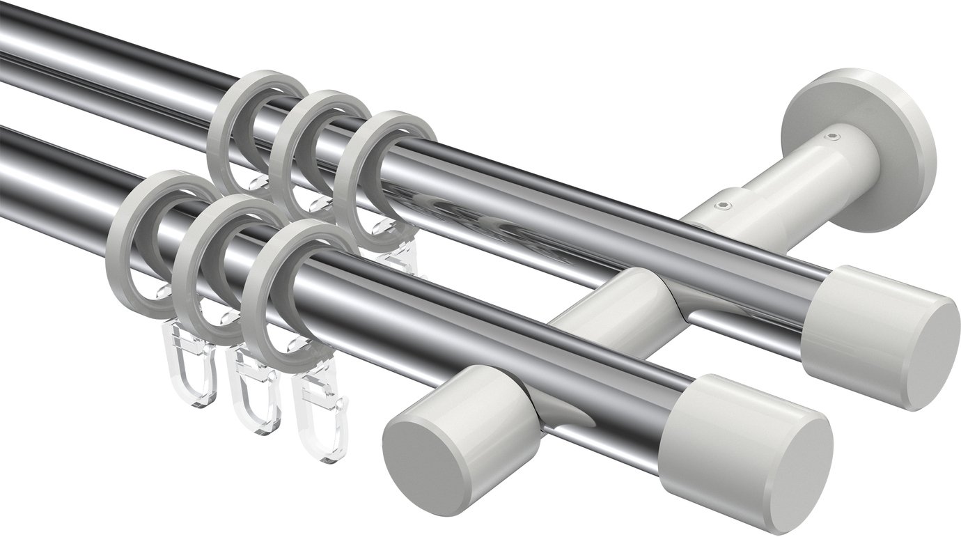 Gardinenstangen aus Metall in 20 mm Ø, 2-läufig, Modell PRESTIGE - Santo Chrom / Weiß