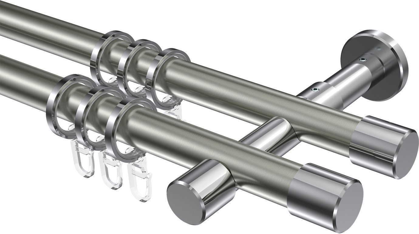 Informationen zu Gardinenstange Metall 20 mm Ø 2-läufig PRESTIGE - Santo Edelstahl-Optik / Chrom: