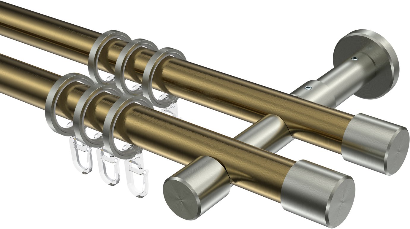 Informationen zu Gardinenstange Metall 20 mm Ø 2-läufig PRESTIGE - Santo Messing Antik / Edelstahl-Optik: