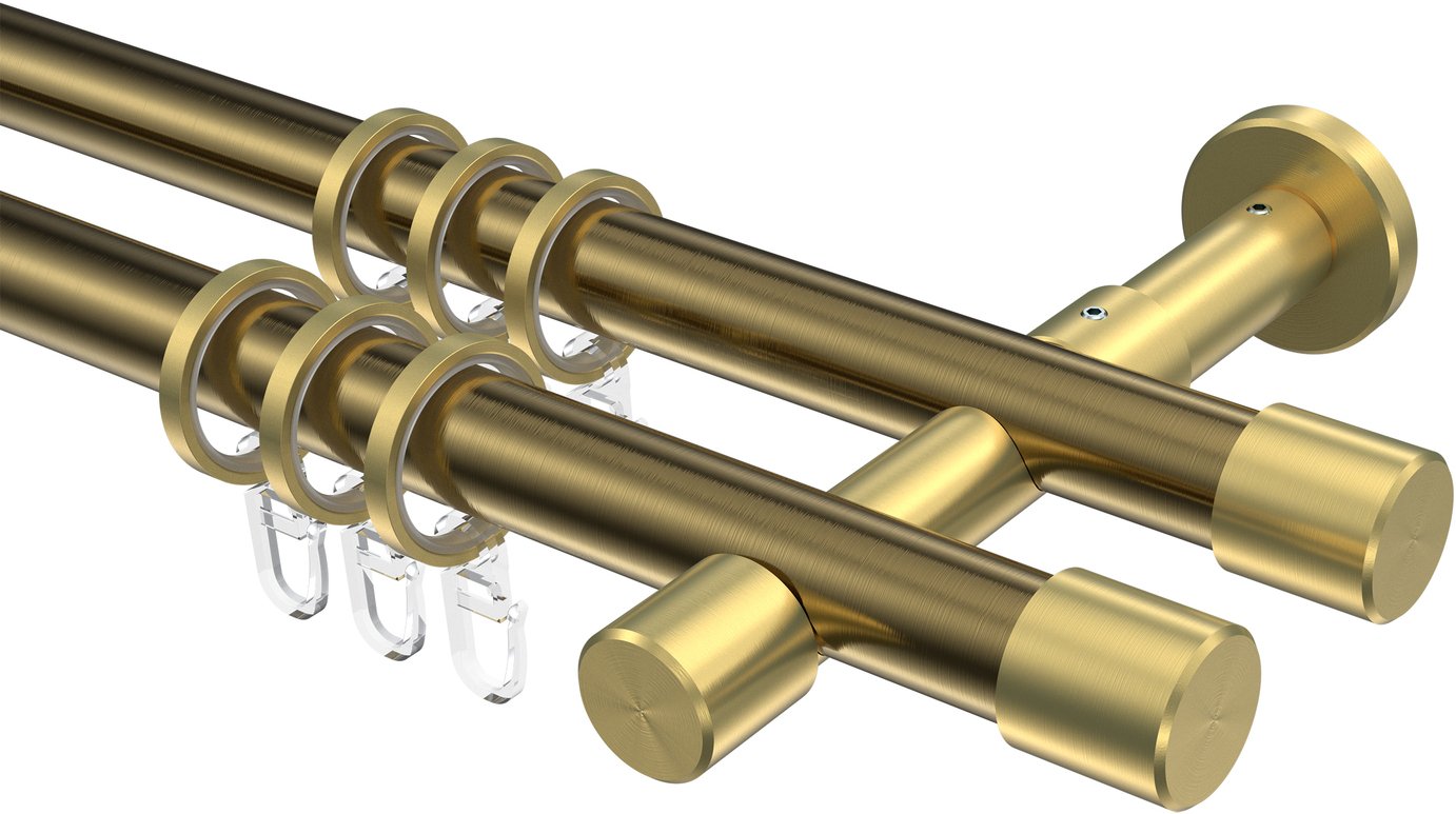 Gardinenstangen aus Metall in 20 mm Ø, 2-läufig, Modell PRESTIGE - Santo Messing Antik / Messing-Optik