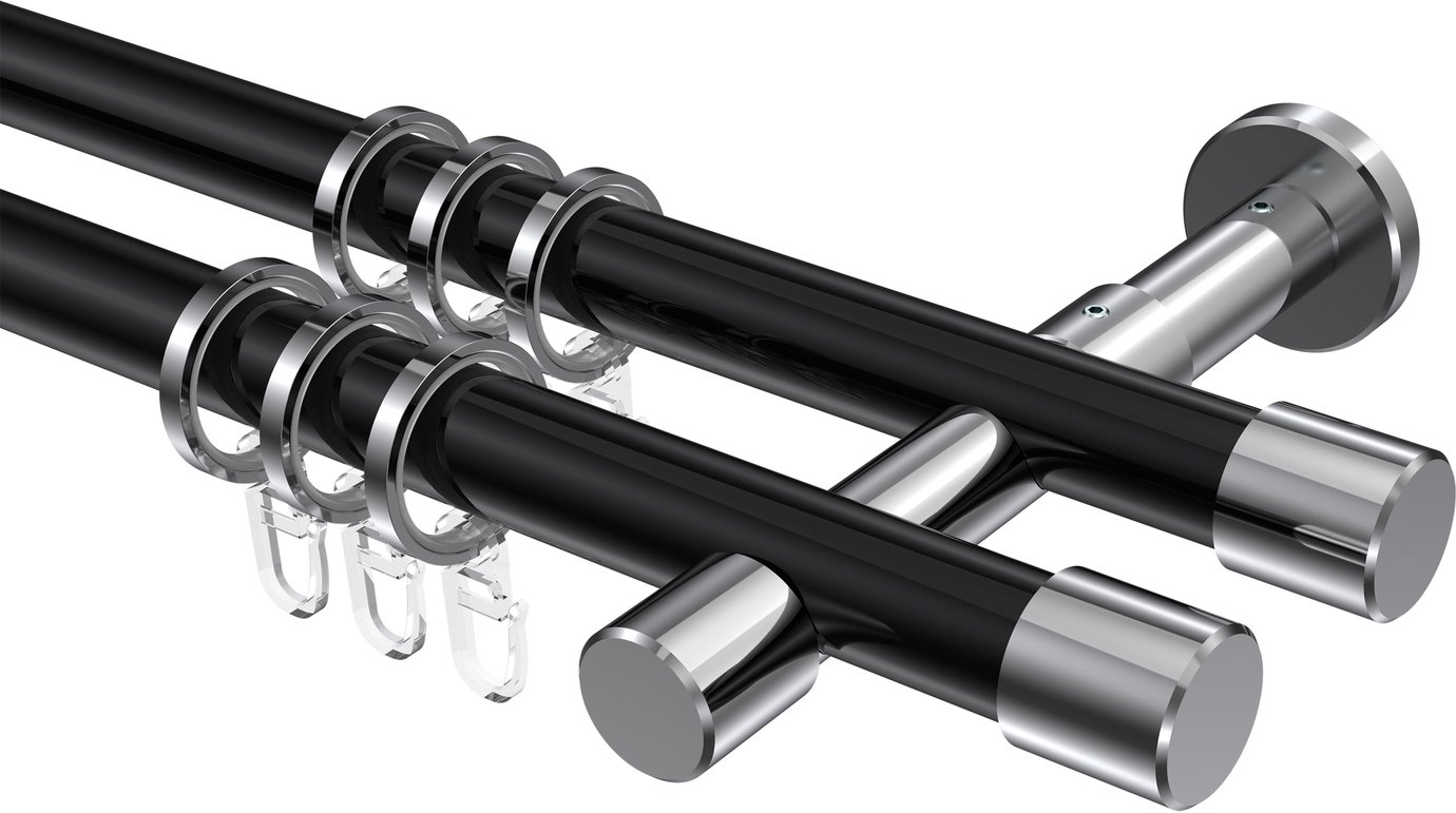 Gardinenstangen aus Metall in 20 mm Ø, 2-läufig, Modell PRESTIGE - Santo Schwarz / Chrom