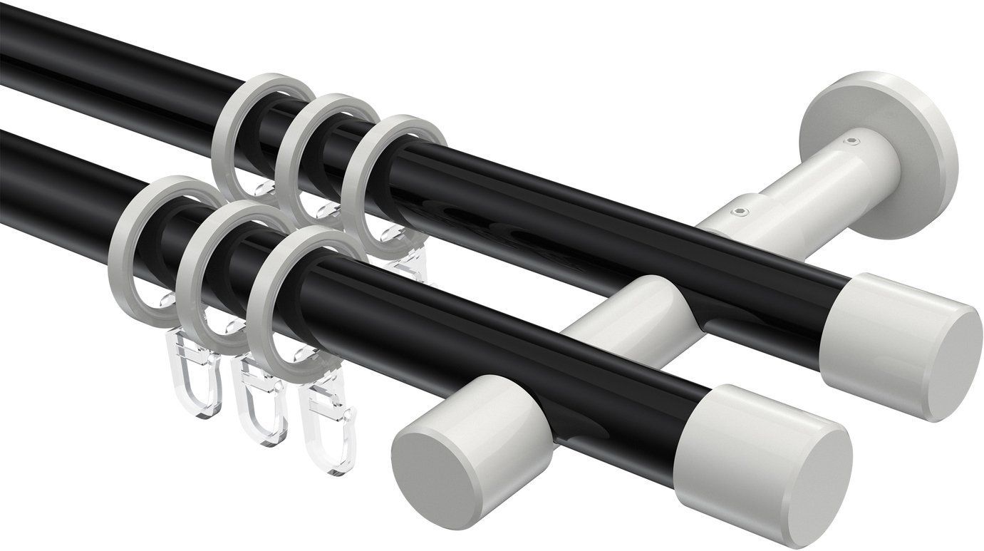 Gardinenstangen aus Metall in 20 mm Ø, 2-läufig, Modell PRESTIGE - Santo Schwarz / Weiß