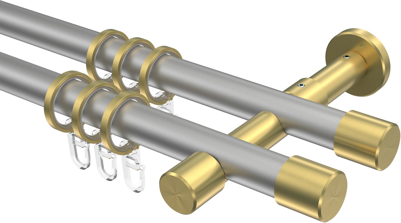 Gardinenstangen aus Metall in 20 mm Ø, 2-läufig, Modell PRESTIGE - Santo Silbergrau / Messing-Optik
