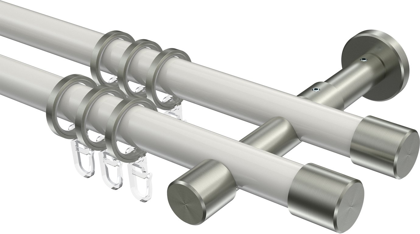 Gardinenstangen aus Metall in 20 mm Ø, 2-läufig, Modell PRESTIGE - Santo Weiß / Edelstahl-Optik