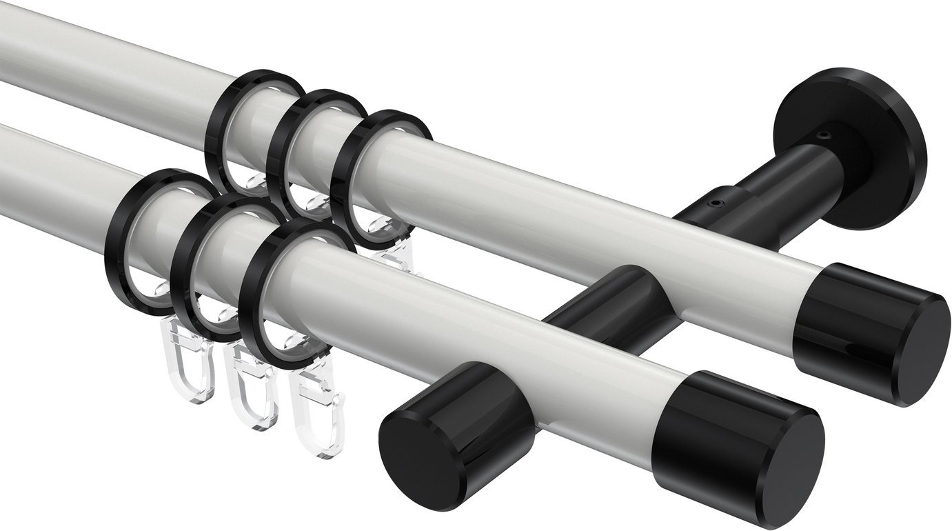 Gardinenstangen aus Metall in 20 mm Ø, 2-läufig, Modell PRESTIGE - Santo Weiß / Schwarz