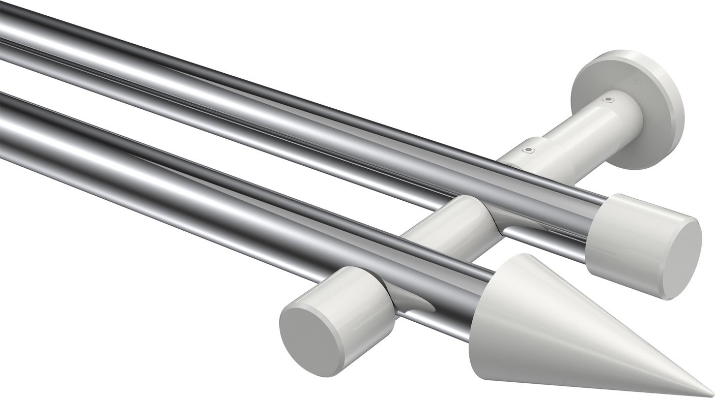 Informationen zu Gardinenstange Metall 20 mm Ø 2-läufig PRESTIGE - Savio Chrom / Weiß (ohne Ringe):