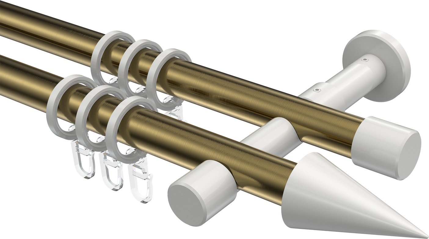 Informationen zu Gardinenstange Metall 20 mm Ø 2-läufig PRESTIGE - Savio Messing Antik / Weiß: