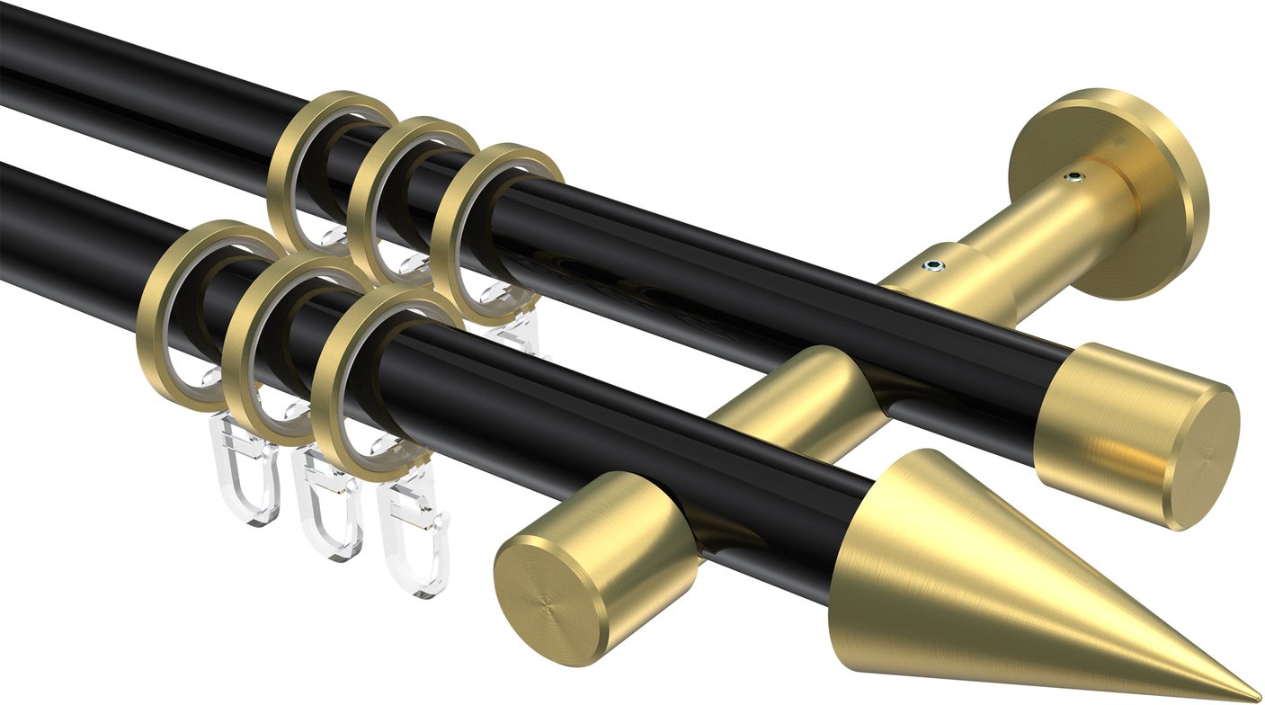Gardinenstangen aus Metall in 20 mm Ø, 2-läufig, Modell PRESTIGE - Savio Schwarz / Messing-Optik