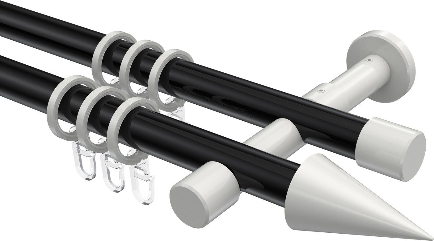 Gardinenstangen aus Metall in 20 mm Ø, 2-läufig, Modell PRESTIGE - Savio Schwarz / Weiß