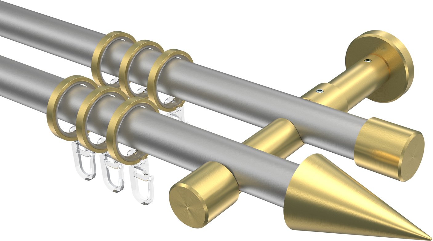 Gardinenstangen aus Metall in 20 mm Ø, 2-läufig, Modell PRESTIGE - Savio Silbergrau / Messing-Optik