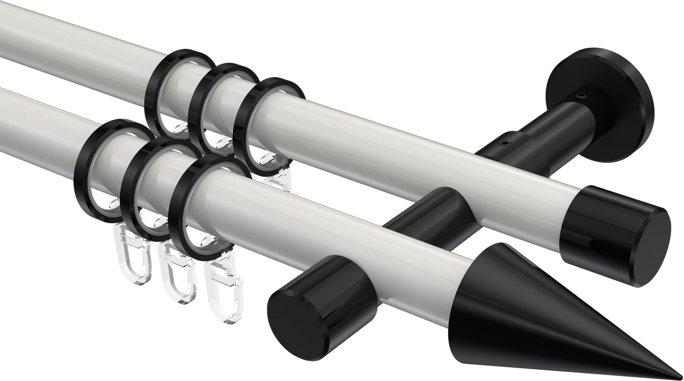 Gardinenstangen aus Metall in 20 mm Ø, 2-läufig, Modell PRESTIGE - Savio Weiß / Schwarz