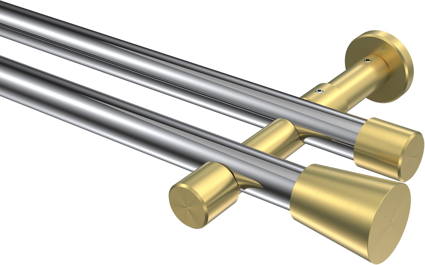 Informationen zu Gardinenstange Metall 20 mm Ø 2-läufig PRESTIGE - Sitra Chrom / Messing-Optik (ohne Ringe):