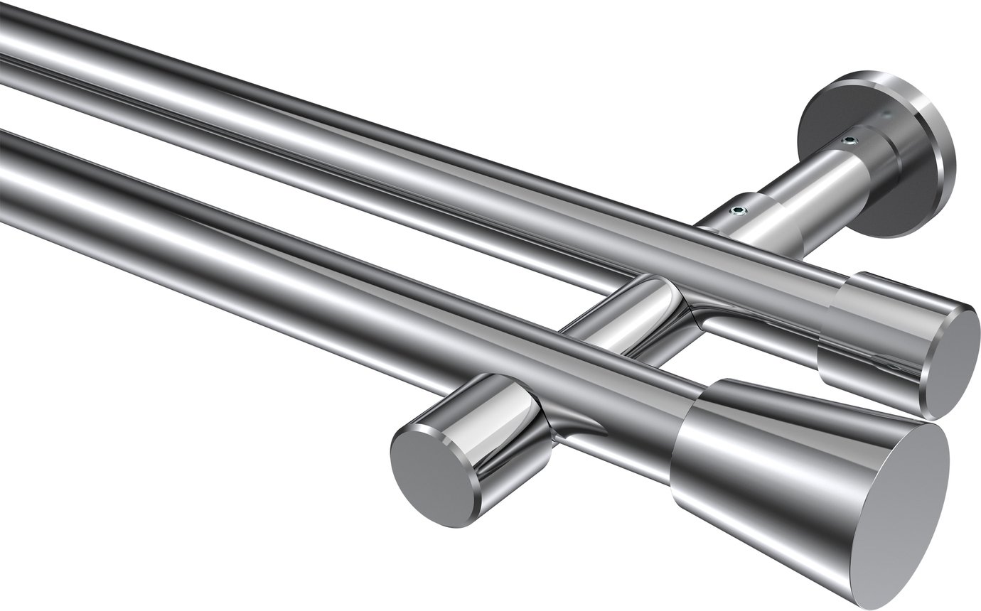 Gardinenstangen aus Metall in 20 mm Ø, 2-läufig, Modell PRESTIGE - Sitra Chrom (ohne Ringe)