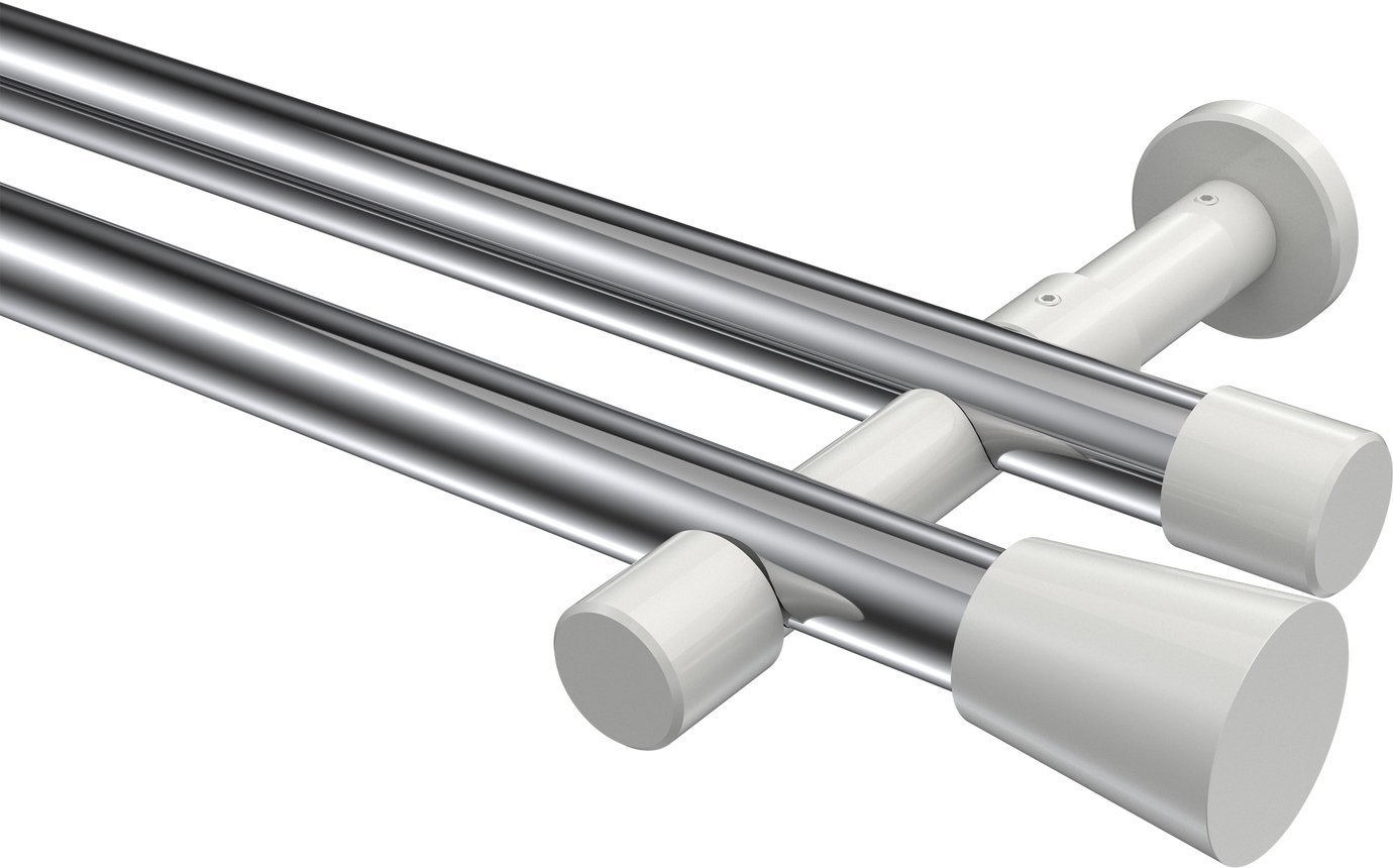 Informationen zu Gardinenstange Metall 20 mm Ø 2-läufig PRESTIGE - Sitra Chrom / Weiß (ohne Ringe):