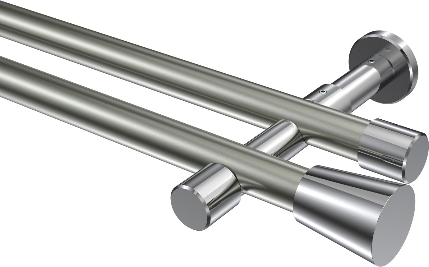 Informationen zu Gardinenstange Metall 20 mm Ø 2-läufig PRESTIGE - Sitra Edelstahl-Optik / Chrom (ohne Ringe):