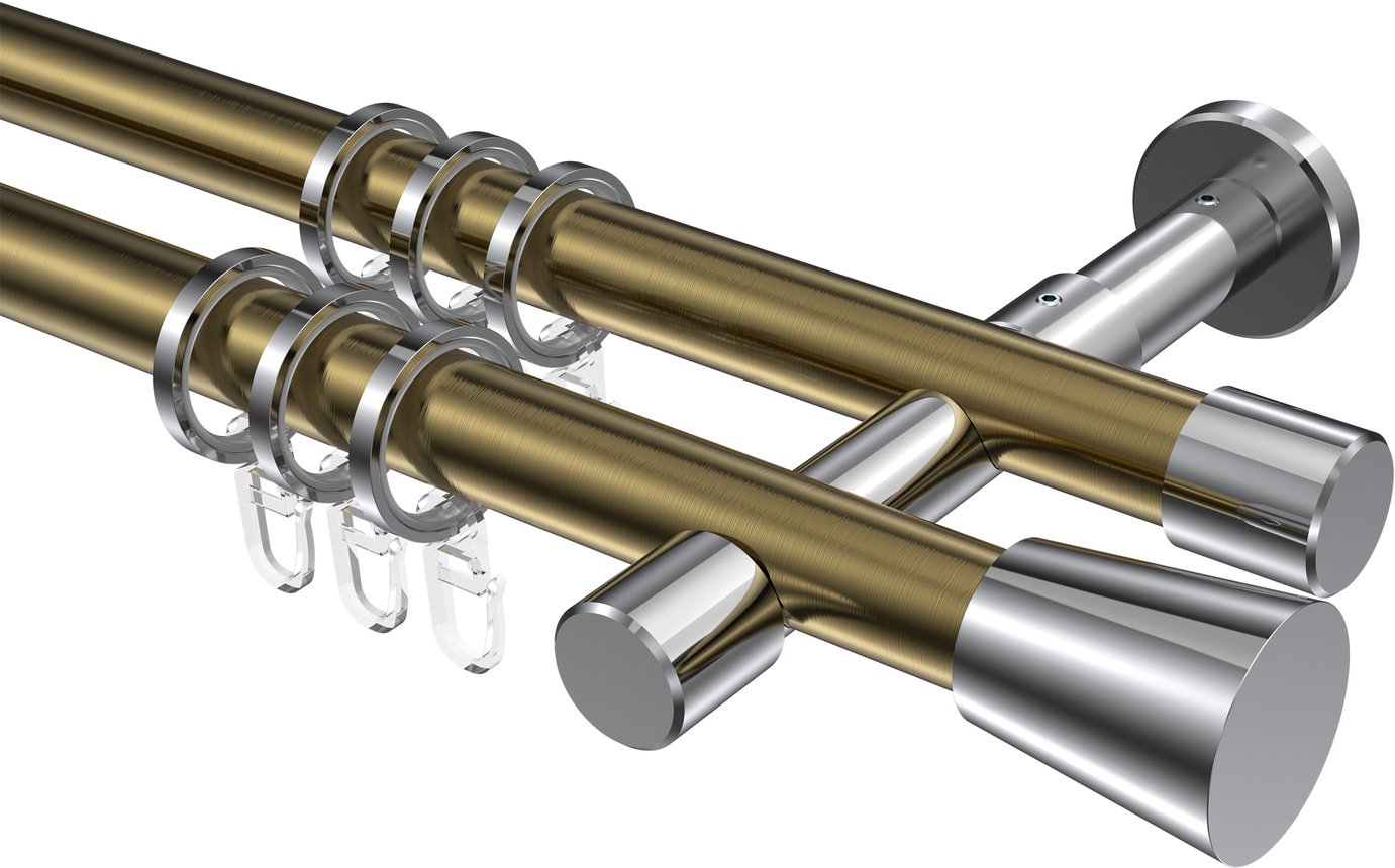 Gardinenstangen aus Metall in 20 mm Ø, 2-läufig, Modell PRESTIGE - Sitra Messing Antik / Chrom