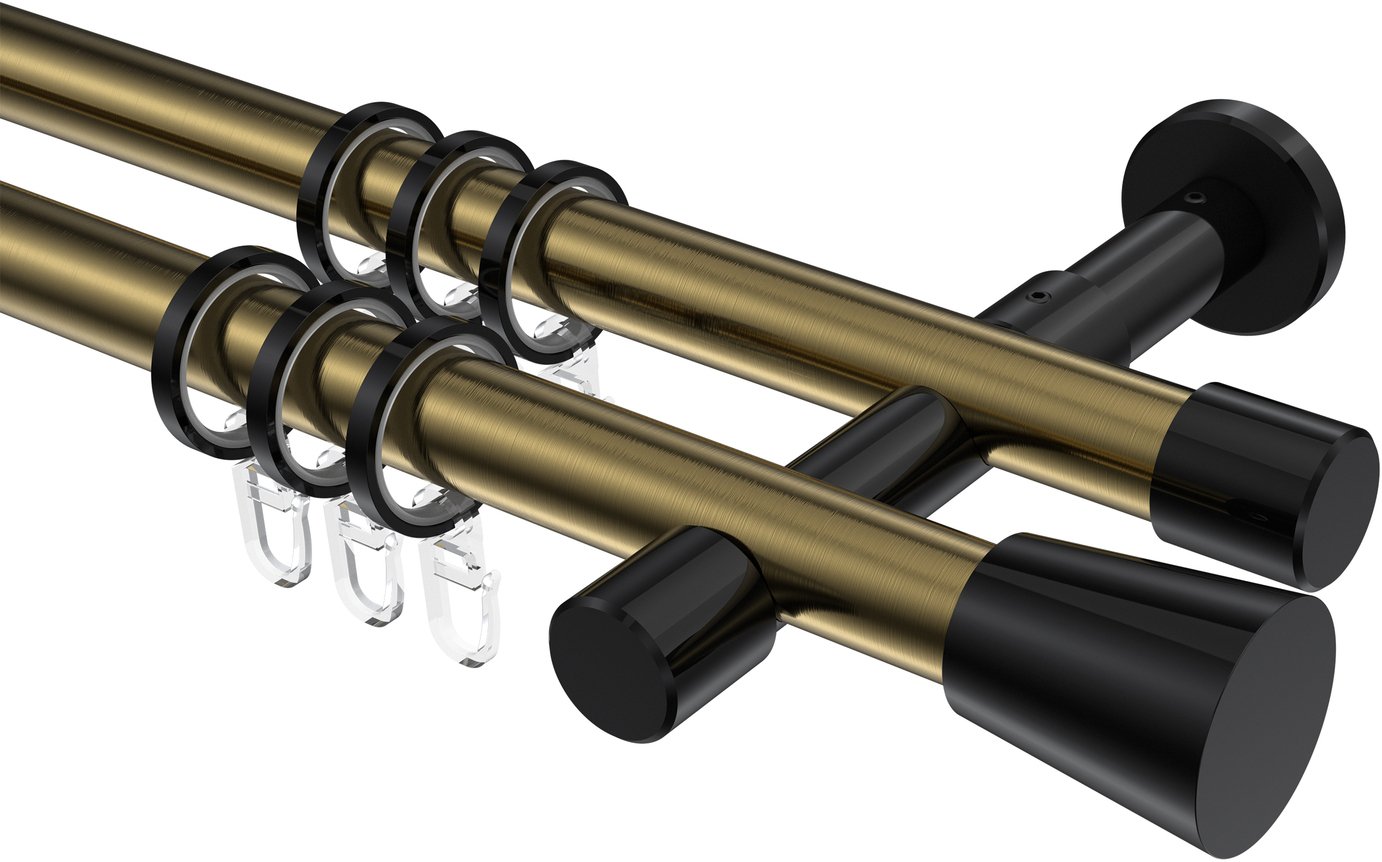 Informationen zu Gardinenstange Metall 20 mm Ø 2-läufig PRESTIGE - Sitra Messing Antik / Schwarz: