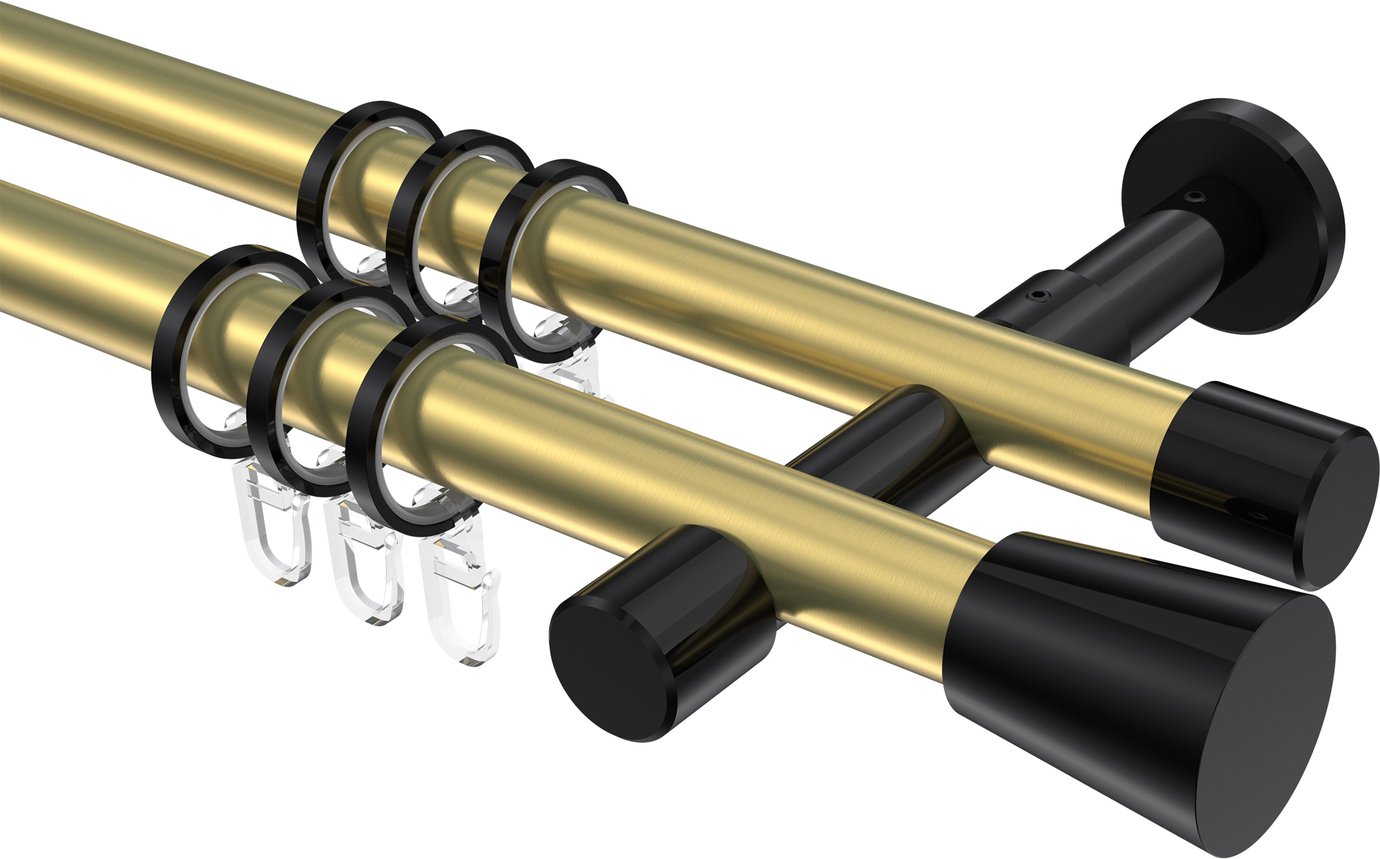 Gardinenstangen aus Metall in 20 mm Ø, 2-läufig, Modell PRESTIGE - Sitra Messing-Optik / Schwarz