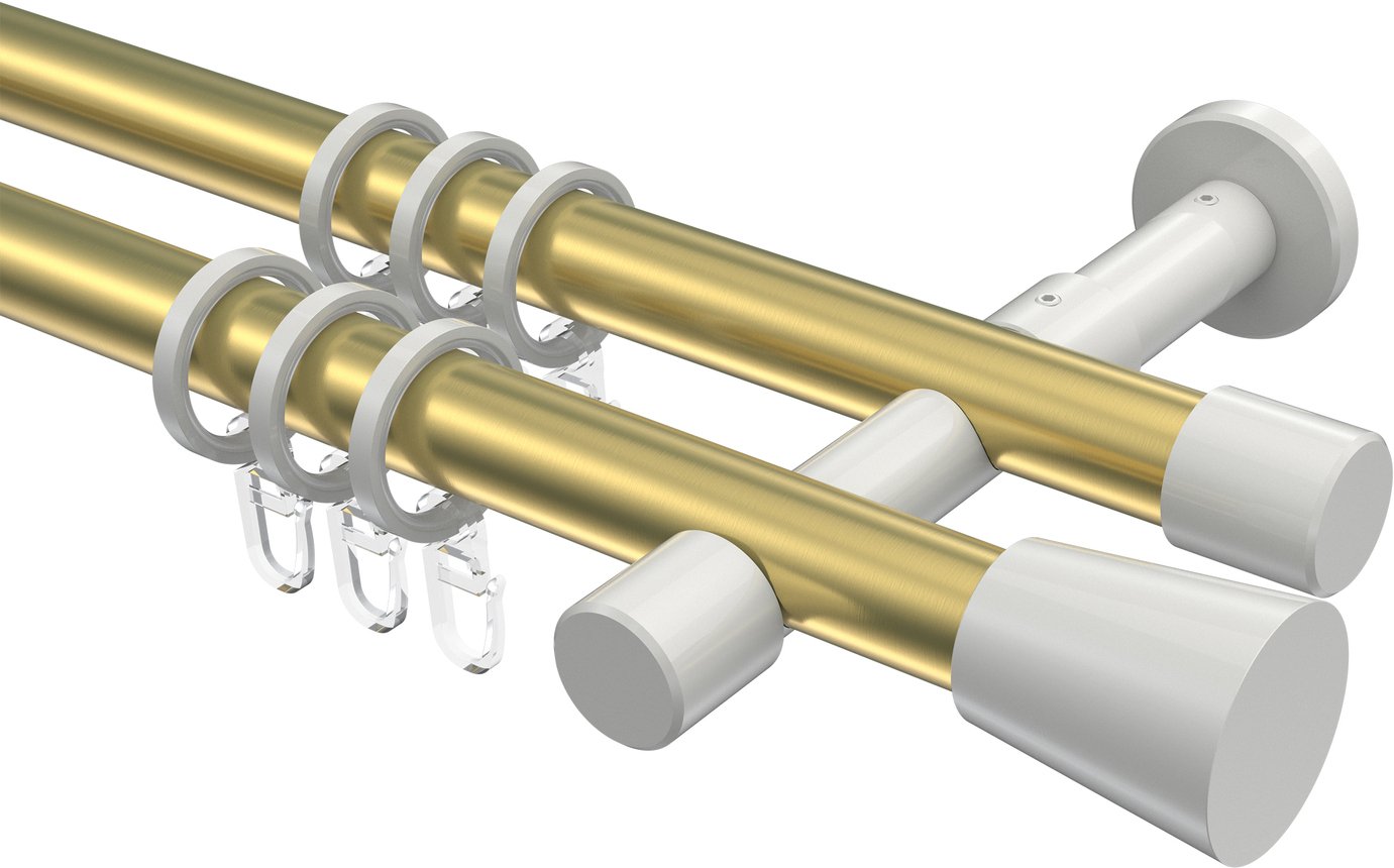 Informationen zu Gardinenstange Metall 20 mm Ø 2-läufig PRESTIGE - Sitra Messing-Optik / Weiß: