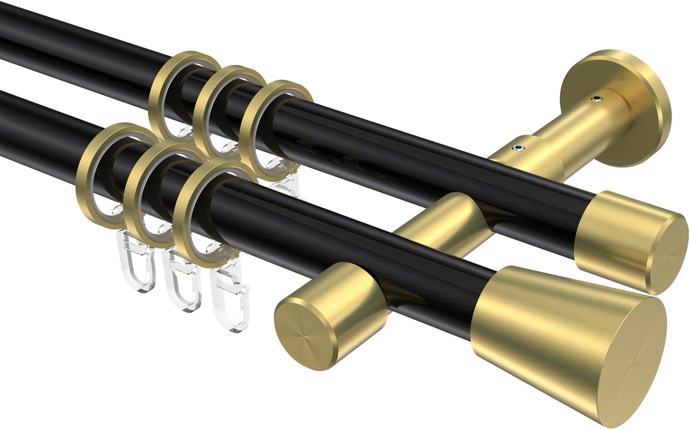 Gardinenstangen aus Metall in 20 mm Ø, 2-läufig, Modell PRESTIGE - Sitra Schwarz / Messing-Optik