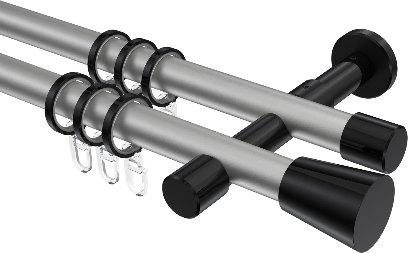Gardinenstangen aus Metall in 20 mm Ø, 2-läufig, Modell PRESTIGE - Sitra Silbergrau / Schwarz