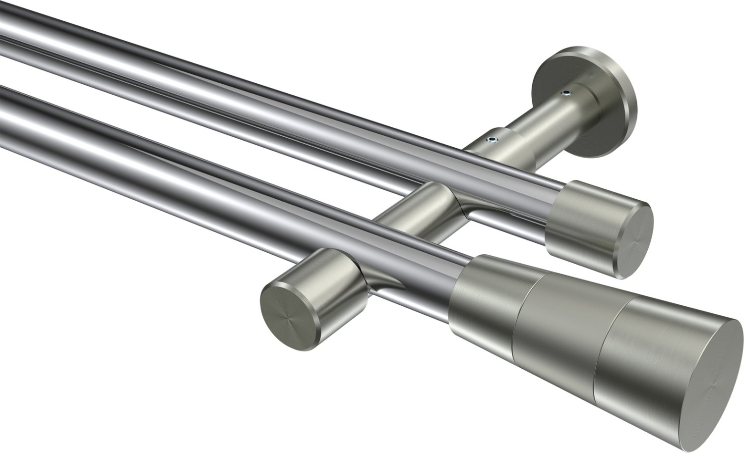 Gardinenstangen aus Metall in 20 mm Ø, 2-läufig, Modell PRESTIGE - Tanara Chrom / Edelstahl-Optik (ohne Ringe)