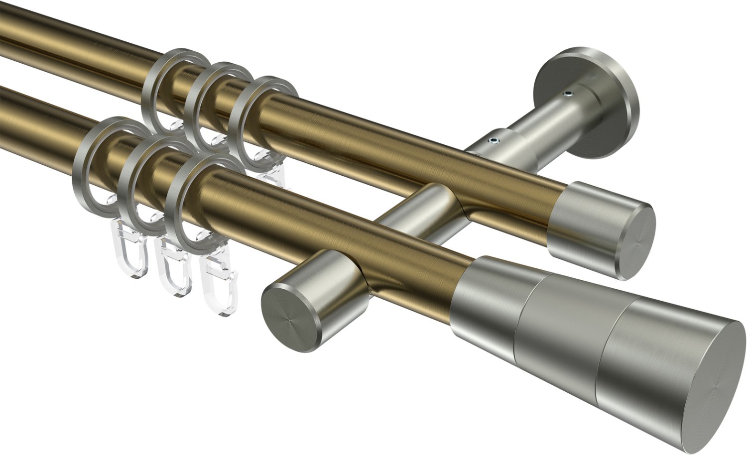 Informationen zu Gardinenstange Metall 20 mm Ø 2-läufig PRESTIGE - Tanara Messing Antik / Edelstahl-Optik: