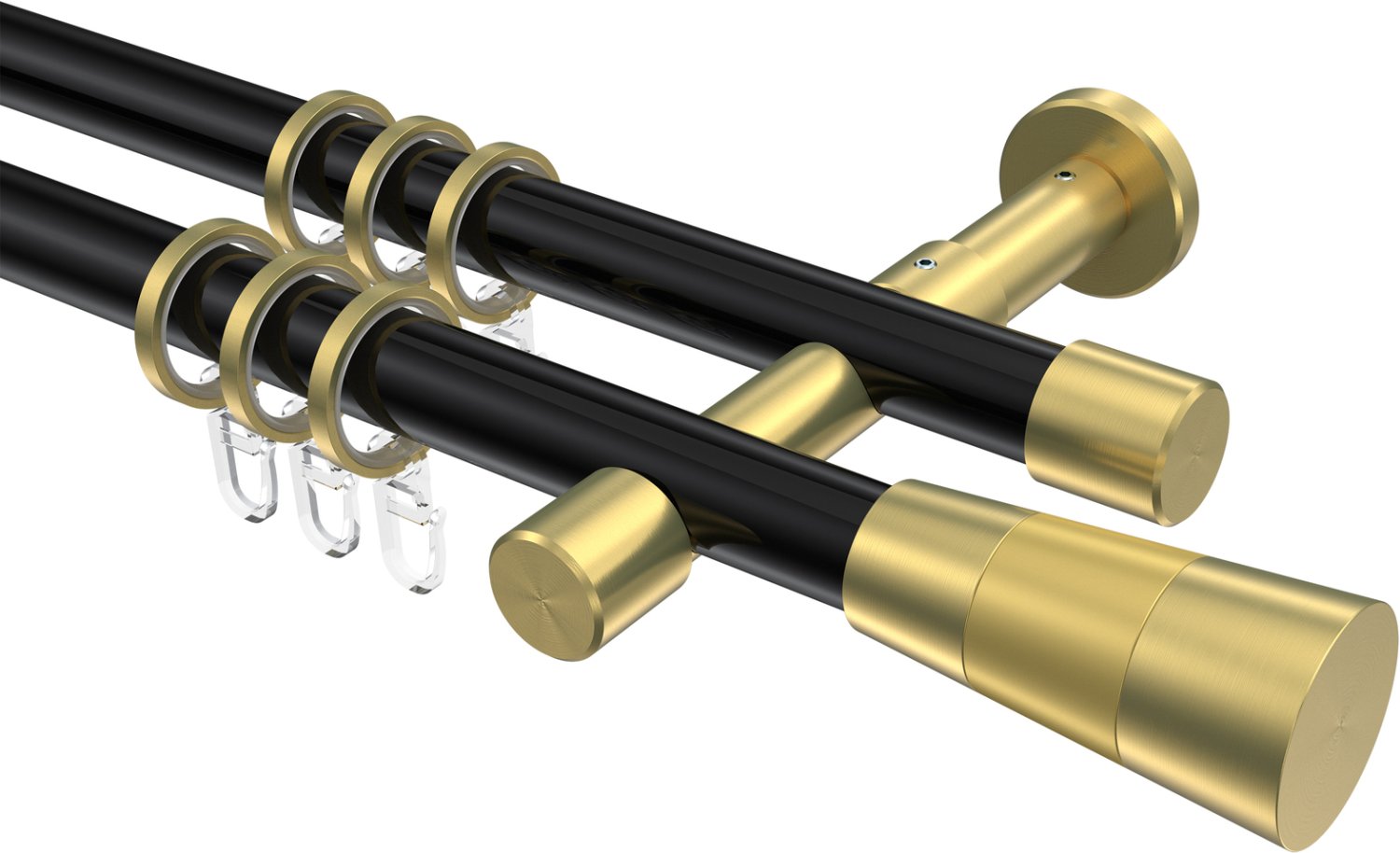 Gardinenstangen aus Metall in 20 mm Ø, 2-läufig, Modell PRESTIGE - Tanara Schwarz / Messing-Optik