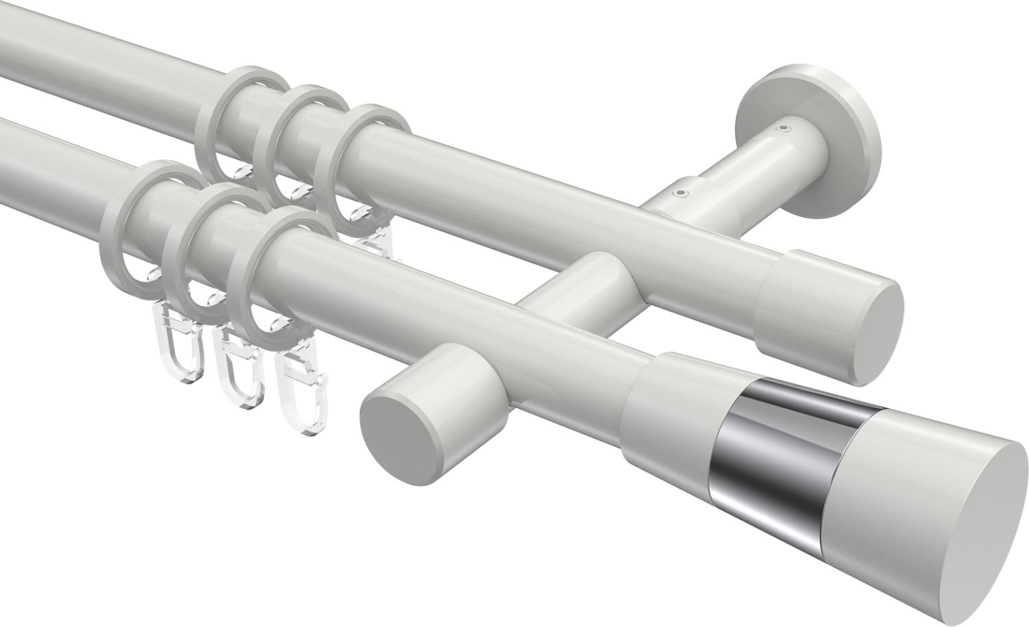 Gardinenstangen aus Metall in 20 mm Ø, 2-läufig, Modell PRESTIGE - Tanara Weiß